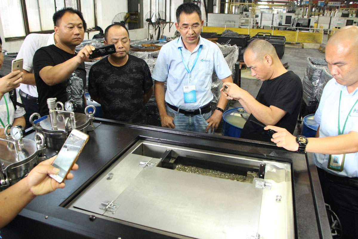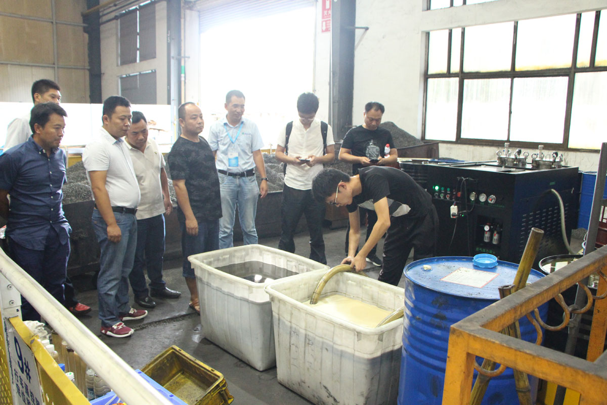 下午,經銷商來到杭州臨安的應用現場參觀。張總向經銷商介紹了“凈來利”切削液凈化回收的整個過程,更加直觀地展現了設備工作流程,經銷商的印象更加深刻。設備經過一段時間的運行,切削液處理前后的效果非常明顯,大量的浮油和溶解油被分離,異味也被清除。
