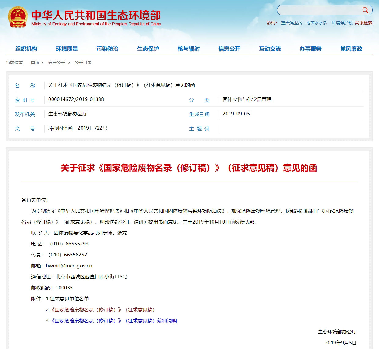 近年來,國家對于環(huán)保執(zhí)法、查處力度越來越嚴的同時,不斷加強相關(guān)法律法規(guī)的制定和修訂。今年9月5日,生態(tài)環(huán)境保護部發(fā)布了《關(guān)于征求《國家危險廢物名錄(修訂稿)》(征求意見稿)意見的函》,進一步對國家危險廢物名錄進行了修訂,現(xiàn)在向社會各界征求意見。從1998年,國家環(huán)保部發(fā)布首個《國家危險廢物名錄》,到2008年、2016年進行修訂,再到今年的修訂稿征求意見,中間的時間間隔從10年、8年縮短到現(xiàn)在的3年,可見國家對于《國家危險廢物名錄》的嚴謹性越來越嚴格,政策導(dǎo)向性越來越明顯。