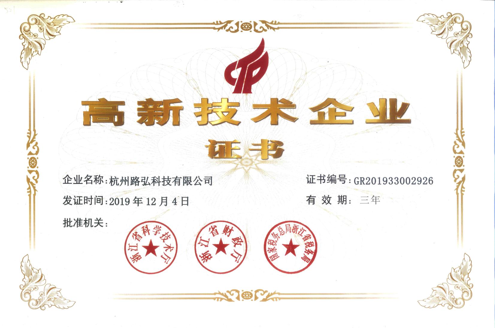 近日,路弘科技順利通過“國家高新技術企業”復審,再次獲得“國家高新技術企業”榮譽稱號。