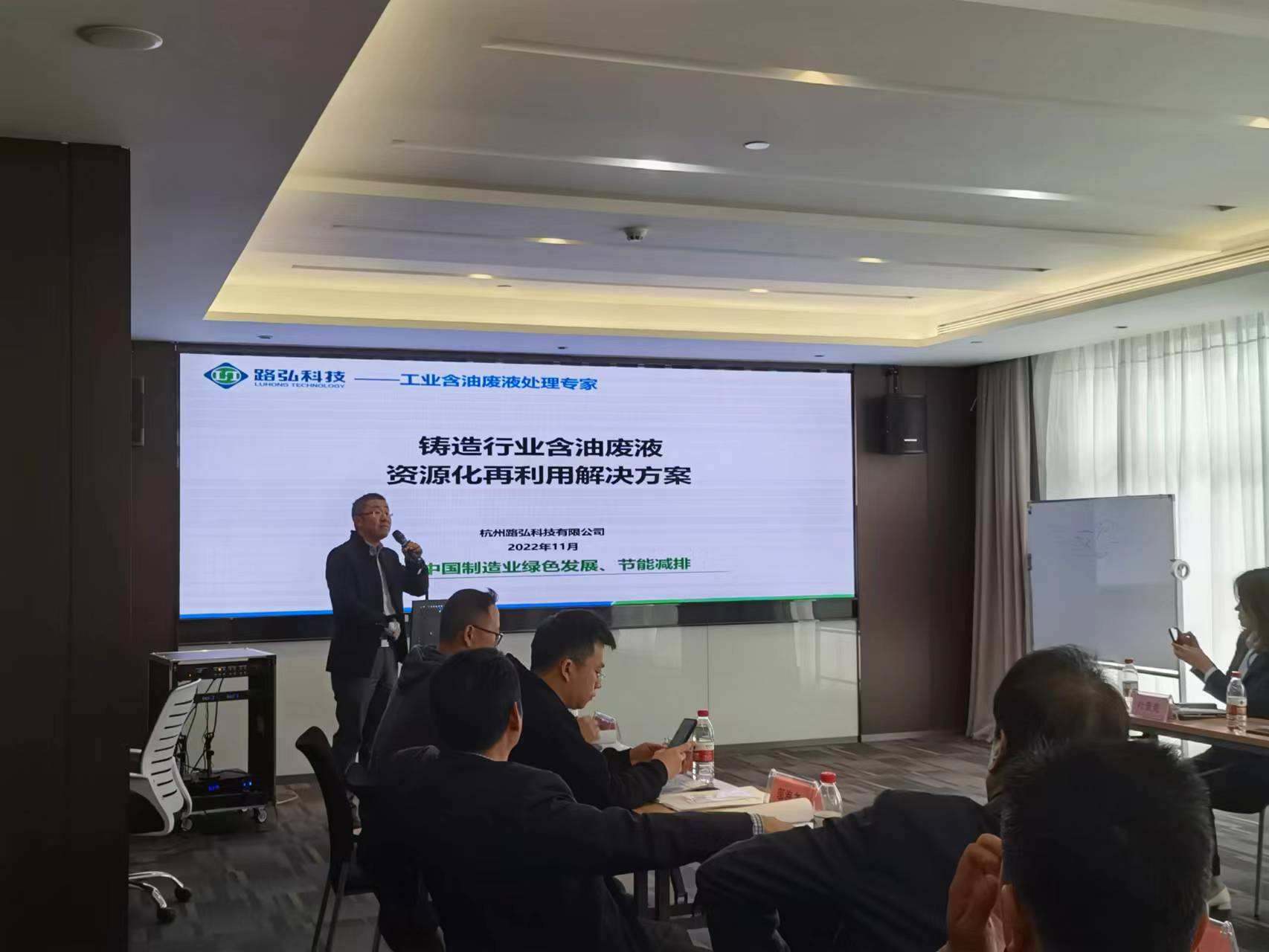 受寧波市鑄造行業協會領導特別邀請,杭州路弘科技有限公司參加了本次會議,并由公司總經理陳英斌先生在會上做《鑄造行業含油廢液資源化再利用解決方案》的主題報告分享。